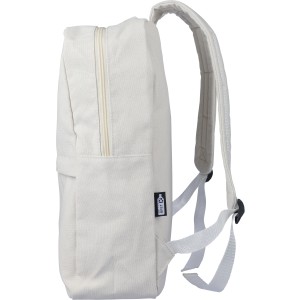 Hátizsák 330 g/m2 újahasznosított policotton anyagból, 210D poliészter béléssel. Egy nagy cipzáras rekesszel, párnázott 15 -es laptoptartó résszel, két belső és két külső rekesszel, oldalzsebbel és egy kicsi, cipzáras elsőzsebbel. Párnázott, állítható vállpánttal és hordozófüllel. Űrtartalom: 14 liter, teherbíró képesség: 13 kg. Címkét tartalmaz.
