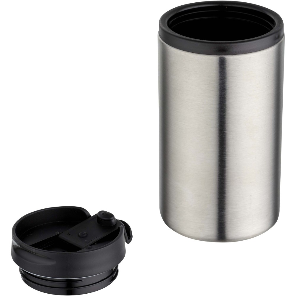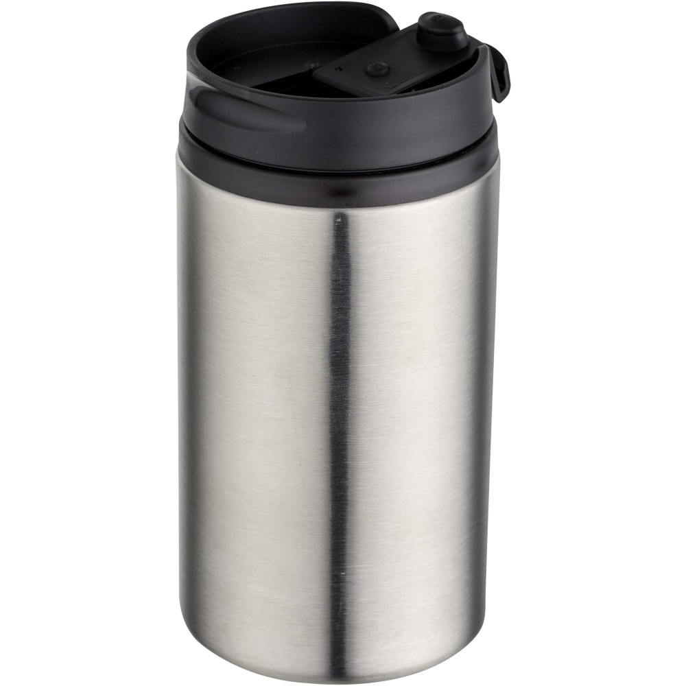 Az RCS újrahasznosított rozsdamentes acélból készült Mojave 300 ml-es termosz hosszú ideig melegen tartja az italokat. Szilárd, de letisztult kialakításának köszönhetően a pohárra helyezett logók felkeltik a figyelmet. A PP műanyag és a rozsdamentes acél kombinációja a Mojave-t erős pohárrá teszi, amely ellenáll a korróziónak és könnyen tisztítható. A lecsavarható fedél biztosítja a termosz zökkenőmentes nyitását és zárását. Emblémázás: Gravírozás