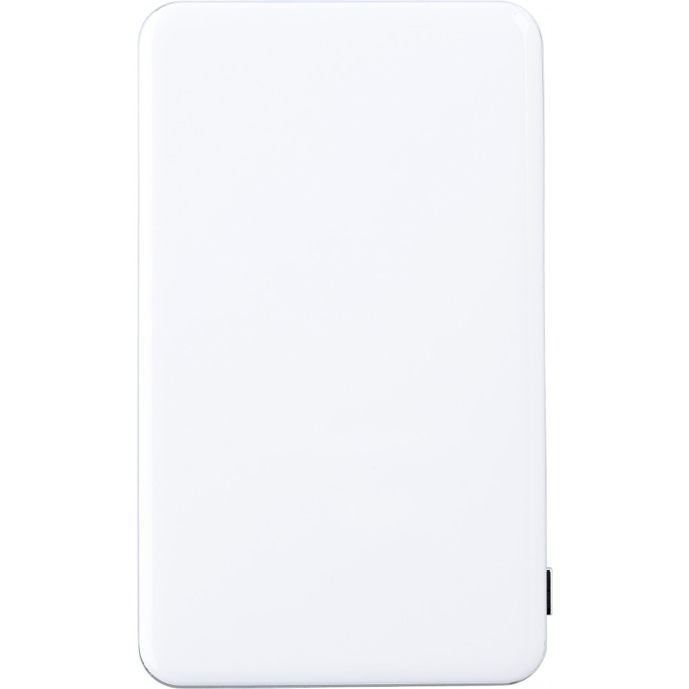 Li-polimer tartalék akkumulátor 5000mAh kapacitással. Bemenet 5V/1A, kimenet 5V/1A/2.1A. Elő- és hátlapja is fényes felületű, ezüst színű oldalpanelekkel. 5 LED fény jelzi a töltöttségi szintet. A 32 cm-es USB / mikro USB csatlakozós vezetéket tartalmazza. A legtöbb elektronikai eszközzel kompatibilis. ABS műanyag. Veszélyes áru, csomagban nem küldhető. Emblémázás: Tamponnyomás