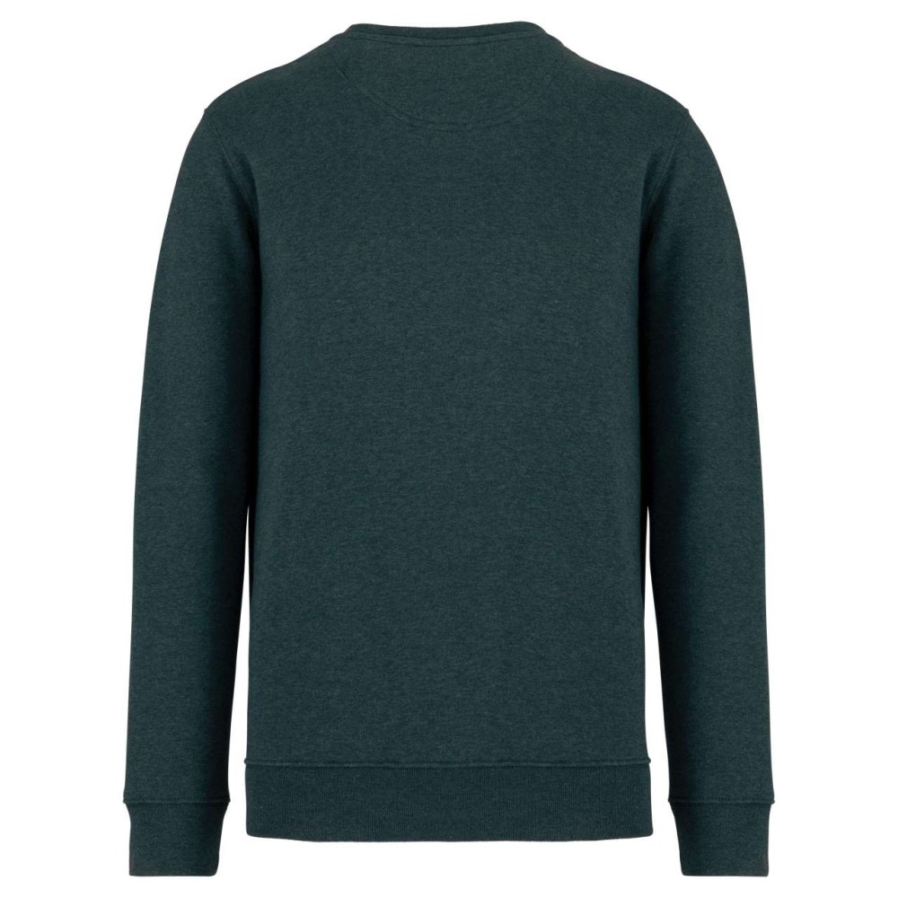 85 % bio, fésült pamutból és 15 % újrahasznosított poliészterből készült. Unisex. Egyenes szabás. LSF (Low Shrinkage Fleece: előzsugorított polár). Kerek nyakkivágás. Félhold alakú. Méretcímke organikus pamut és újrahasznosított poliészter logóval. 1x1 bordás nyakpasszé, alsó szegély és kézelő. Duplaöltés a kézelőn, karöltőben és kézelőn. Egyszeres felülvarrás a nyakkivágáson. Belső szalagozott nyakrész. A nyakrészen nincs márkajelzés, csak méretcímke a könnyebb dekorálás érdekében. A ruhadarabhoz kartonpapírból készült ismertetővel, amely felsorolja a felhasznált környezetbarát anyagokat. OEKO-TEX N CQ1007/7 STANDARD 100 tanúsítvánnyal rendelkezik. IFTH. 350 g/m2. Emblémázás: Hímzés, Szitanyomás