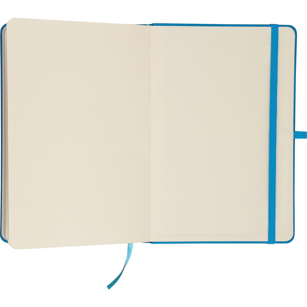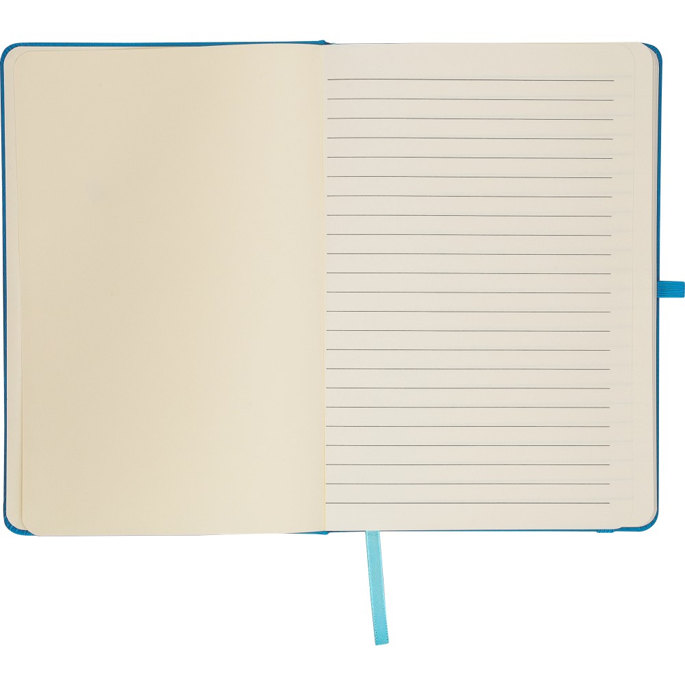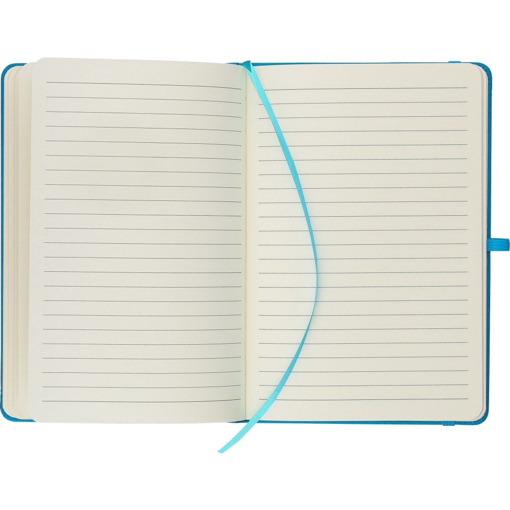 A5-ös jegyzetfüzet újrahasznosított kemény PU borítóval, a hátoldalán dombornyomott újrahasznosított logóval. Tartós és rugalmas anyagból készült, amely kényelmes fogást, párnázottságot és hosszan tartó használatot biztosít. A borító lézergravírozásra alkalmas, amely során finom, tone-on-tone (színazonos) hatás érhető el. 80 vonalas, 70 g/m2 súlyú lapot tartalmaz, színben illeszkedő gumírozott rögzítőpánttal, könyvjelző szalaggal és tolltartó hurokkal. A füzetben használt papír FSC Mix tanúsítvánnyal rendelkezik.