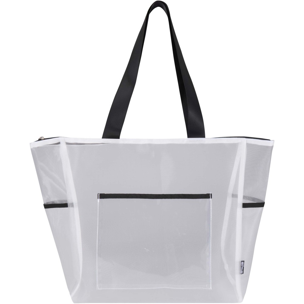 Ez az újrahasznosított poliészter hálóból készült hátizsák fenntartható választást kínál a praktikum és a stílus megőrzése mellett. A termék egy tágas, 18 literes főrekesszel rendelkezik a mindennapi alapfelszerelések számára, egy cipzáras elülső zsebbel a kisebb tárgyaknak, valamint két oldalsó zsebbel, amelyek ideálisak vizespalack vagy esernyő tárolására. A párnázott, állítható vállpántok biztosítják a kényelmes viseletet a nap folyamán. Az átlátszó hálós szerkezet letisztult, modern megjelenést kölcsönöz, miközben láthatóvá teszi a táska tartalmát, így tökéletes megoldást jelent olyan munkahelyeken, rendezvényeken vagy iskolákban, ahol előírás az átlátszó táska használata.