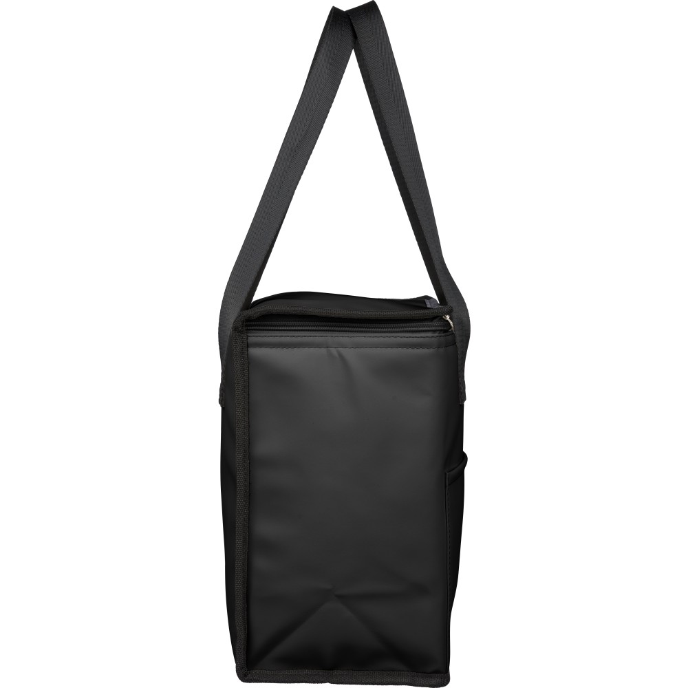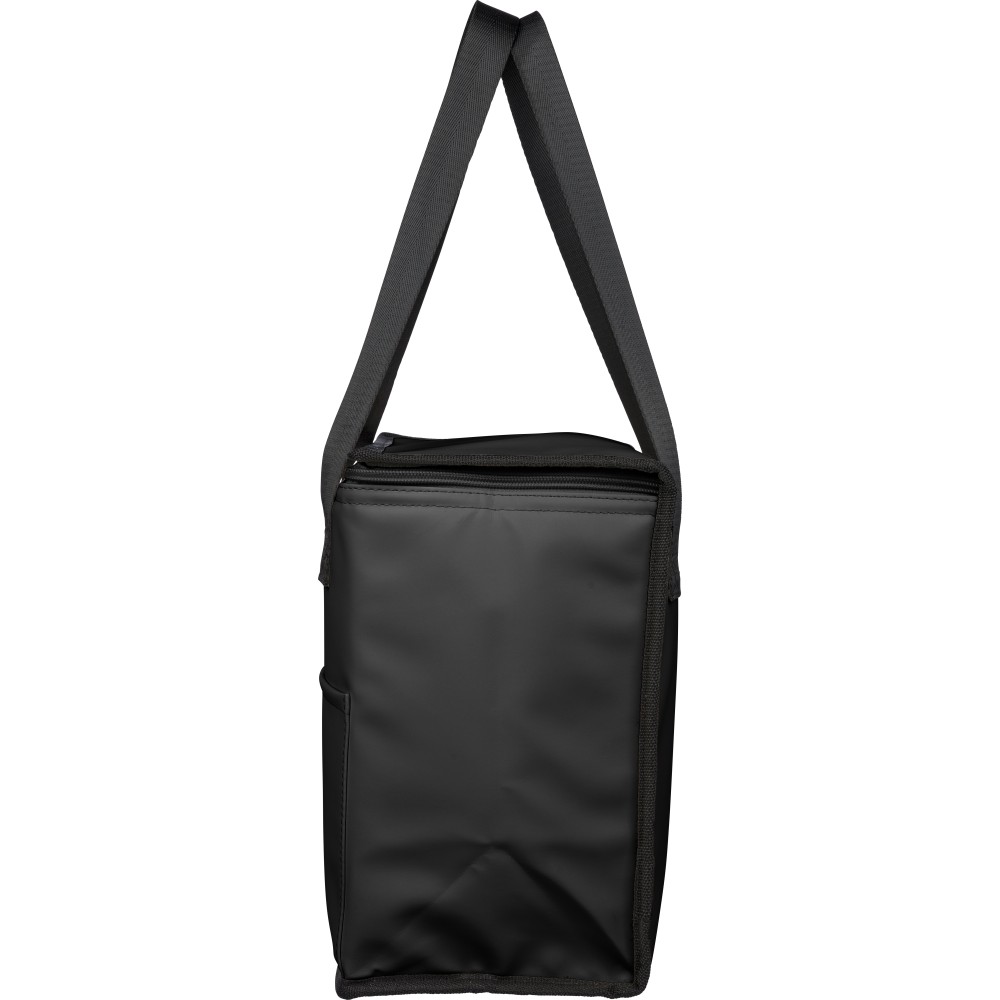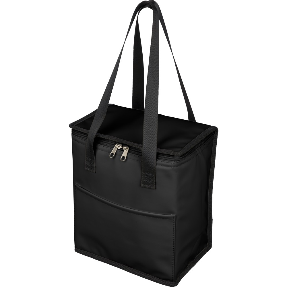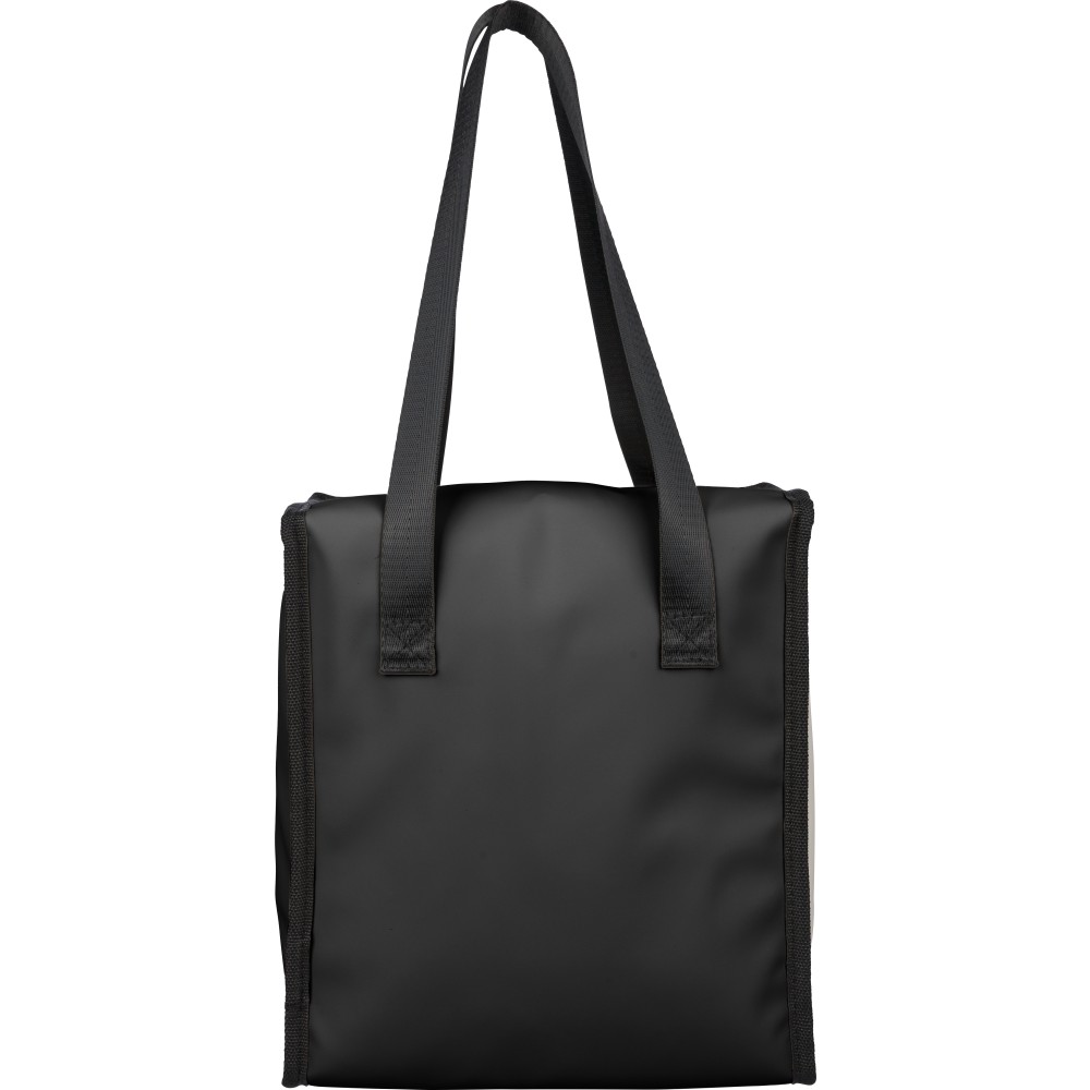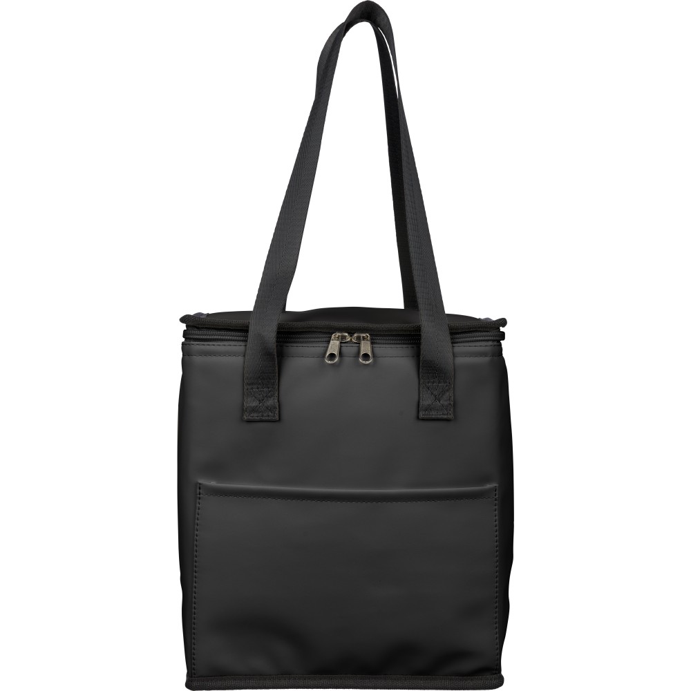 Újrahasznosított PU anyagból készült hűtőtáska 9 literes űrtartalommal, 210D újrahasznosított poliészter béléssel. 2,5 × 66 cm méretű hosszú fülekkel és elülső tárolózsebbel rendelkezik. A belső címkén újrahasznosított alapanyagra utaló logó található. Emblémázás: Szitanyomás