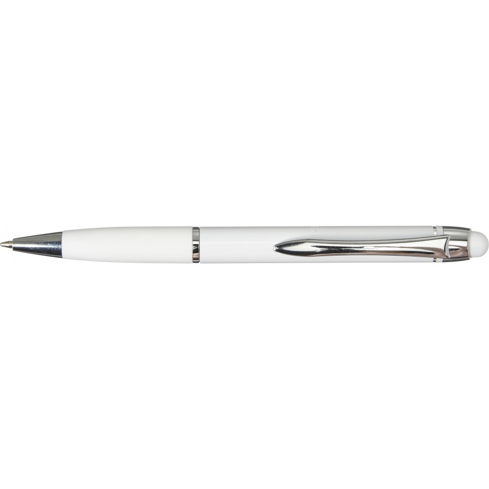 Golyóstoll érintővel, fényes felülettel, színben illeszkedő gumis fogórésszel, fényes ezüst kiegészítőkkel, fekete tollbetéttel. Alumínium. Emblémázás: Gravírozás, Tamponnyomás, UV nyomtatás