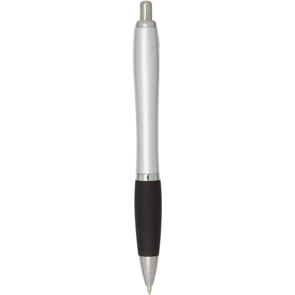 A Nash újrahasznosított műanyagból készült golyóstoll stílusos, íves kialakítással, ezüstszínű tolltesttel és kiegészítőkkel, valamint a kényelmes írást biztosító színes, puha fogórésszel rendelkezik. Az RCS tanúsítvánnyal rendelkező, újrahasznosított ABS műanyagból készült írószer tartós kivitelben segít csökkenteni a szűz alapanyagok felhasználását. A toll hátoldalán található rABS logó jelzi az újrahasznosított anyagtartalmat. Tinta színe: fekete. Tollhegy mérete: 1.0 mm. Íráshossz: 1000 méter.