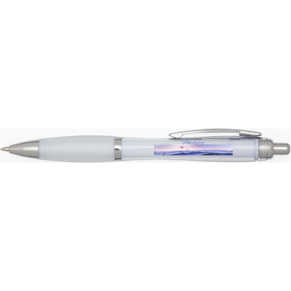 A Nash újrahasznosított műanyagból készült nyomógombos golyóstoll stílusos, ívelt kialakítású, áttetsző színes tolltesttel, ezüst díszítéssel és a tolltest színével megegyező, kényelmes írást biztosító puha fogórésszel rendelkezik. Az RCS tanúsítvánnyal rendelkező újrahasznosított ABS műanyagból készült termék segít csökkenteni a szűz alapanyagok felhasználását, miközben megőrzi tartósságát. A toll hátoldalán található rABS logó jelzi az újrahasznosított anyagösszetételt. Tinta színe: fekete. Tollhegy mérete: 1.0 mm. Íráshossz: 1000 méter.