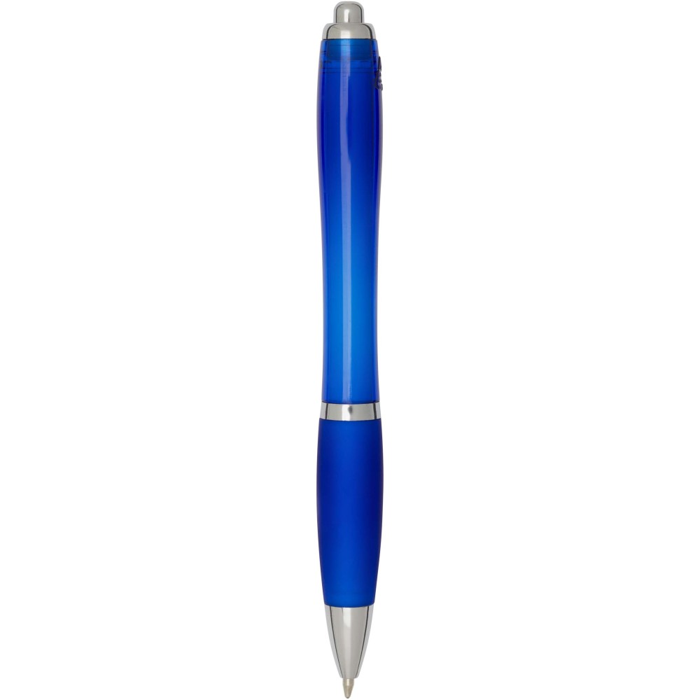 A Nash újrahasznosított műanyagból készült nyomógombos golyóstoll stílusos, ívelt kialakítású, áttetsző színes tolltesttel, ezüst díszítéssel és a tolltest színével megegyező, kényelmes írást biztosító puha fogórésszel rendelkezik. Az RCS tanúsítvánnyal rendelkező újrahasznosított ABS műanyagból készült termék segít csökkenteni a szűz alapanyagok felhasználását, miközben megőrzi tartósságát. A toll hátoldalán található rABS logó jelzi az újrahasznosított anyagösszetételt. Tinta színe: fekete. Tollhegy mérete: 1.0 mm. Íráshossz: 1000 méter.