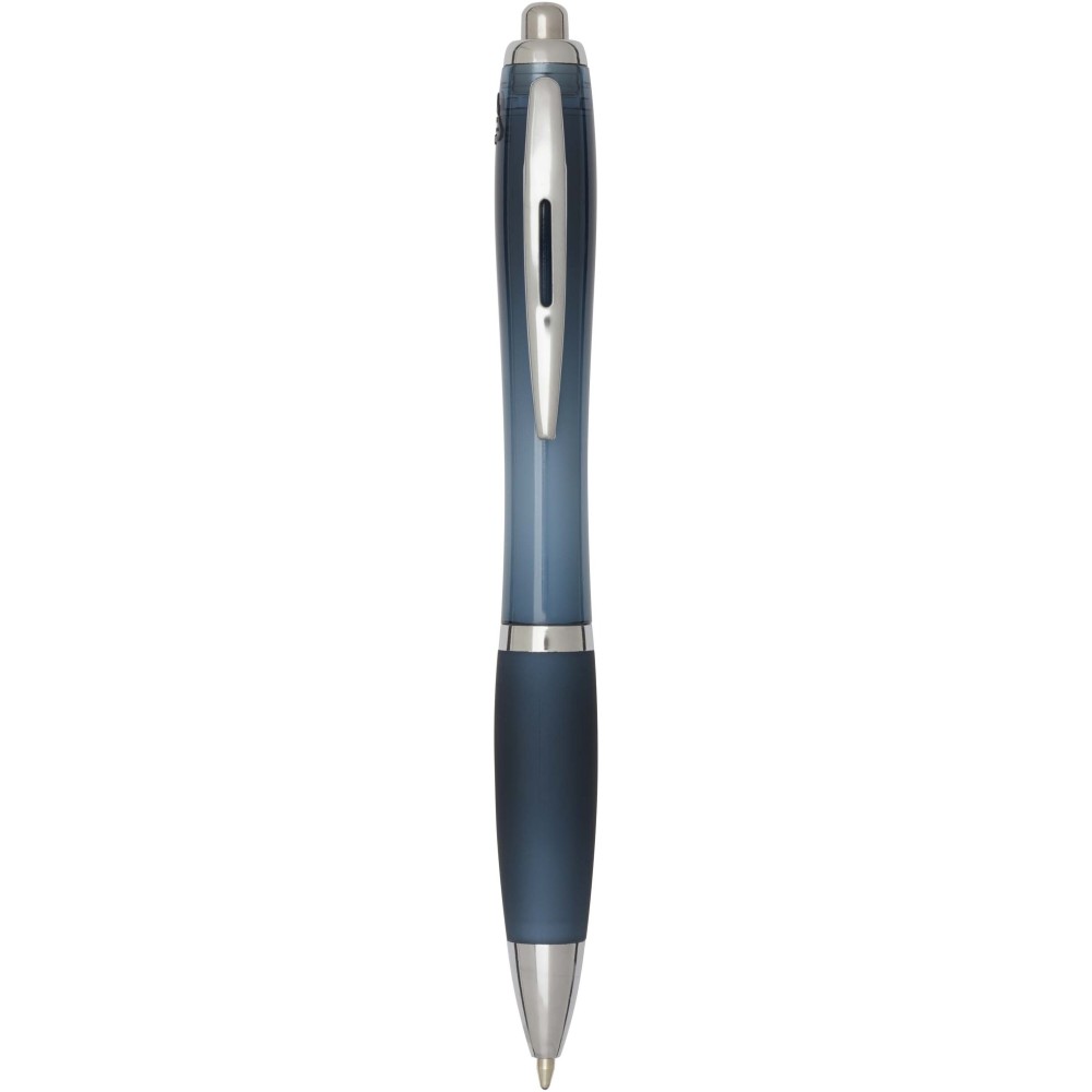 A Nash újrahasznosított műanyagból készült nyomógombos golyóstoll stílusos, ívelt kialakítású, áttetsző színes tolltesttel, ezüst díszítéssel és a tolltest színével megegyező, kényelmes írást biztosító puha fogórésszel rendelkezik. Az RCS tanúsítvánnyal rendelkező újrahasznosított ABS műanyagból készült termék segít csökkenteni a szűz alapanyagok felhasználását, miközben megőrzi tartósságát. A toll hátoldalán található rABS logó jelzi az újrahasznosított anyagösszetételt. Tinta színe: fekete. Tollhegy mérete: 1.0 mm. Íráshossz: 1000 méter.