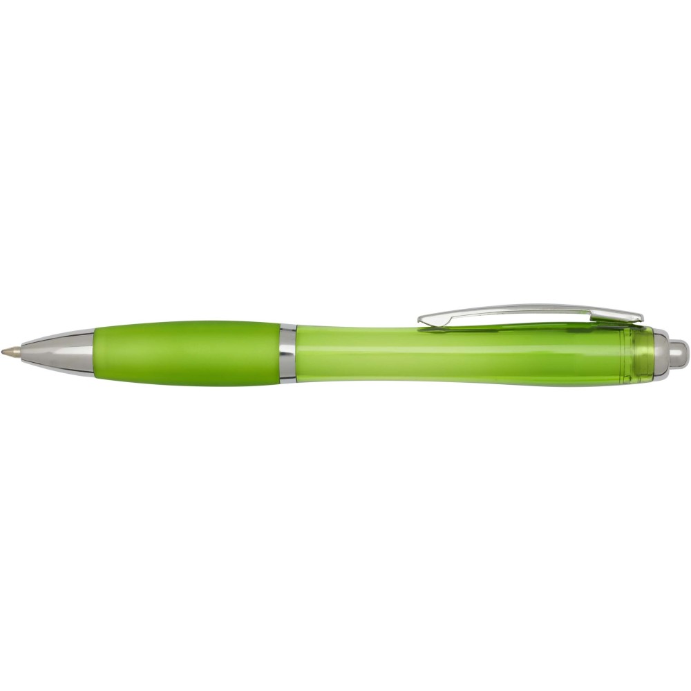 A Nash újrahasznosított műanyagból készült nyomógombos golyóstoll stílusos, ívelt kialakítású, áttetsző színes tolltesttel, ezüst díszítéssel és a tolltest színével megegyező, kényelmes írást biztosító puha fogórésszel rendelkezik. Az RCS tanúsítvánnyal rendelkező újrahasznosított ABS műanyagból készült termék segít csökkenteni a szűz alapanyagok felhasználását, miközben megőrzi tartósságát. A toll hátoldalán található rABS logó jelzi az újrahasznosított anyagösszetételt. Tinta színe: fekete. Tollhegy mérete: 1.0 mm. Íráshossz: 1000 méter.