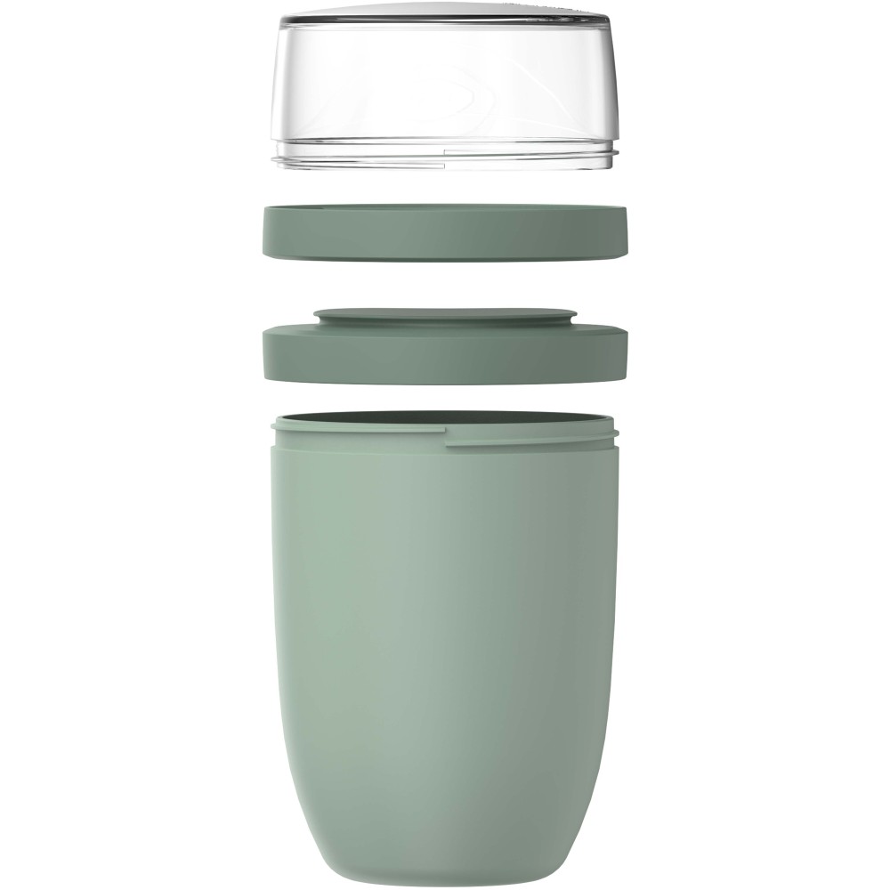 Az Ellipse háromrészes ételtároló készlet három különálló rekesszel rendelkezik az összetevők elkülönített tárolásához. Minden tároló saját fedéllel van ellátva, ami megakadályozza az ízek és textúrák keveredését az étkezésig. Az eszköz 6-8 órán át melegen, vagy akár 12 órán keresztül hidegen tartja az ételt. A két felső, átlátszó tároló egyenként 200 ml, míg az alsó tartály 500 ml űrtartalommal bír. Tartós anyagokból készült, a külső felülete hűvös és száraz marad. A termék kézi mosogatása javasolt, a fedél műanyag alkatrészei mosogatógépben tisztíthatók. BPA-mentes.
