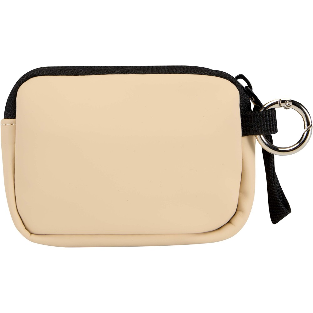 Minőségi újrahasznosított PU bőrből készült, felcsatolható pénztárca, amely ötvözi a letisztult stílust a mindennapi praktikummal. A biztonságos cipzáras záródással és belső kártyatartó rekesszel ellátott kiegészítő gondoskodik az értéktárgyak rendszerezett és könnyen hozzáférhető tárolásáról. Egyszerűen rögzíthető táskához, övbújtatóhoz vagy kulcscsomóhoz.