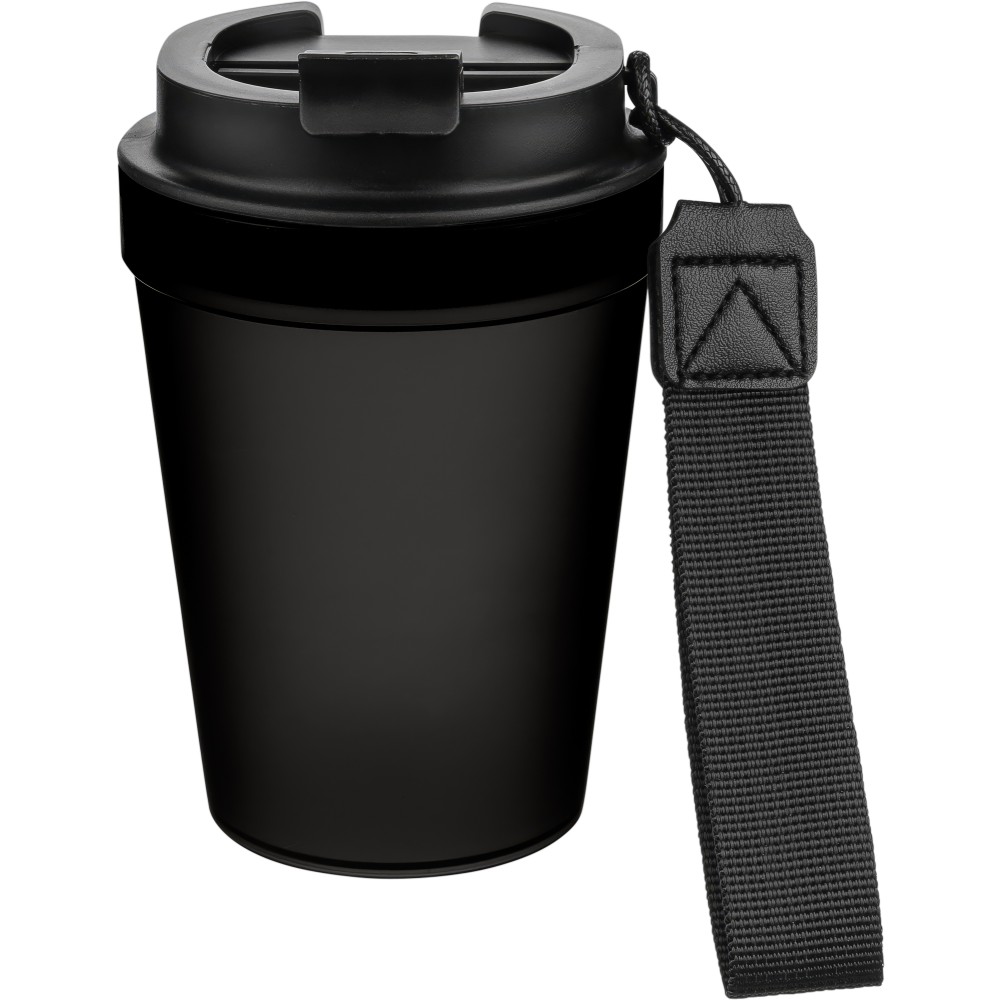 Átlátszó, szimplafalú ivópohár 350 ml-es űrtartalommal, vastagfalú kialakítással. Csavaros fedéllel és poliészter csuklópánttal rendelkezik a könnyű hordozhatóság érdekében. Tartós, ütésálló, megbízható termék. Meleg italokhoz is alkalmas, de kérjük, vegye figyelembe, hogy az egyfalú szerkezet miatt hőátadás előfordulhat.