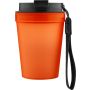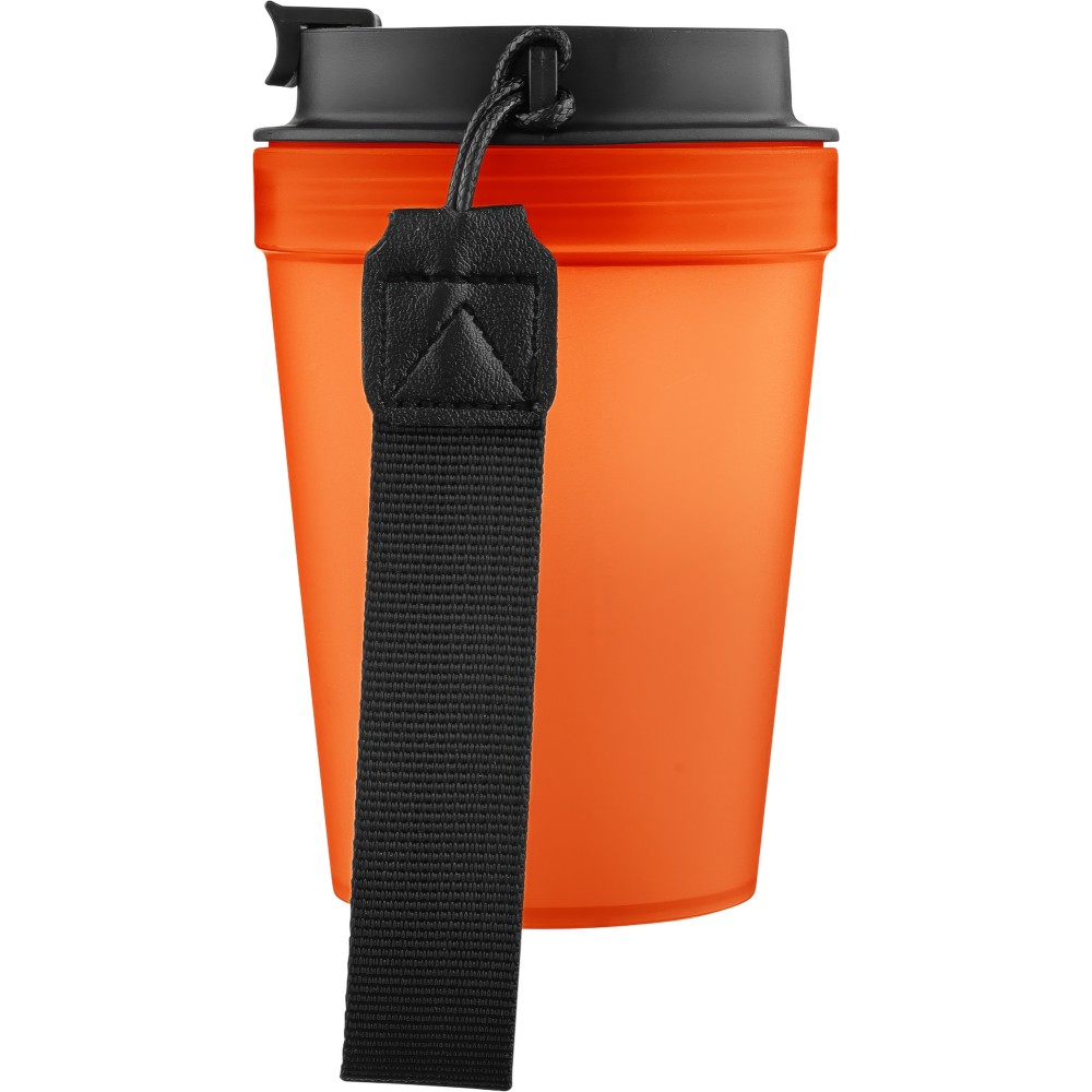 Átlátszó, szimplafalú ivópohár 350 ml-es űrtartalommal, vastagfalú kialakítással. Csavaros fedéllel és poliészter csuklópánttal rendelkezik a könnyű hordozhatóság érdekében. Tartós, ütésálló, megbízható termék. Meleg italokhoz is alkalmas, de kérjük, vegye figyelembe, hogy az egyfalú szerkezet miatt hőátadás előfordulhat.