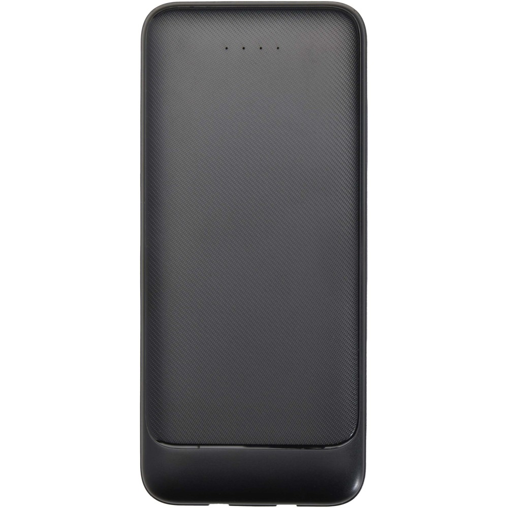 Adhil 10.000 mAh powerbank: Az Adhil 10.000 mAh-s powerbank újrahasznosított műanyagból készül, kompakt kialakítása egyszerre stílusos és praktikus. Két beépített kábellel rendelkezik: egy Type-C, valamint egy Lightning/microUSB kombinált csatlakozóval, továbbá két USB-A kimenettel és egy Type-C bemenet/kimenettel, így sokoldalú töltési lehetőségeket kínál. Az LED-jelző mutatja a töltési állapotot, így útközben is megbízható energiaforrás. Emblémázás: Tamponnyomás, UV nyomtatás
