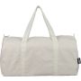 600D poliészterből készült rPET sporttáska 210D béléssel és vízlepergető PU bevonattal, 40 literes űrtartalommal. Elülső és oldalsó cipzáras zsebbel, hálós oldalzsebbel, két fogantyúval és állítható vállpánttal rendelkezik. Külső felületén rPET címkével ellátva.